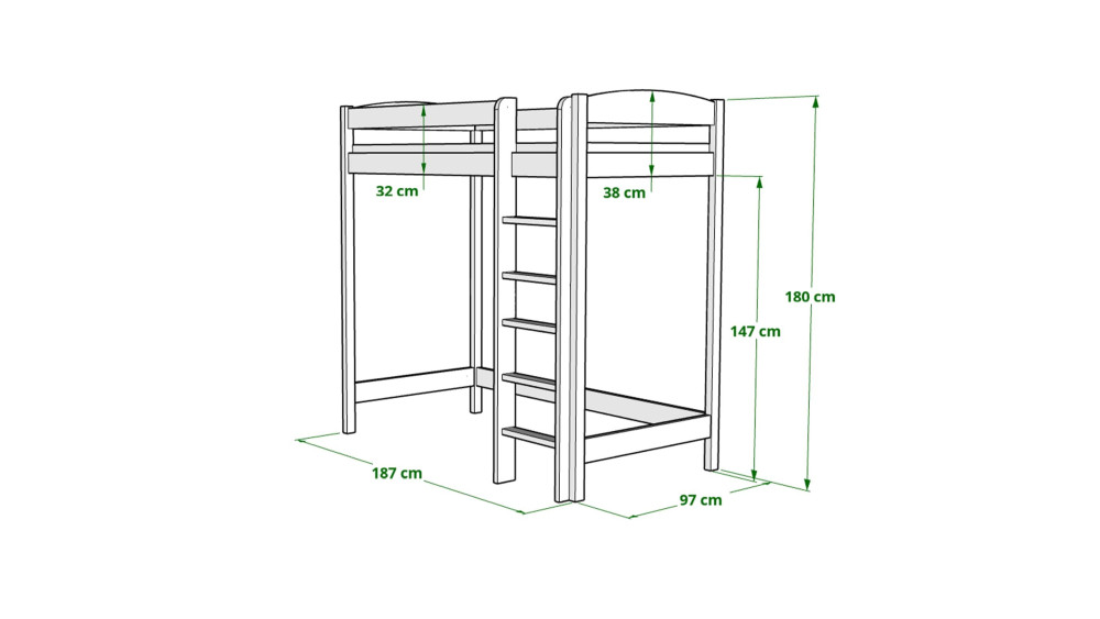 Łóżko Pojedyncze ANTRESOLA Z ŁUKIEM 90x180 wysokość 180 LAKIEROWANY / POWYSTAWOWE