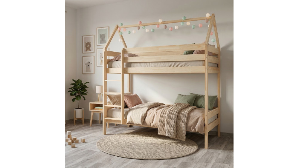 Łóżko drewniane piętrowe DOMEK PIĘTROWY