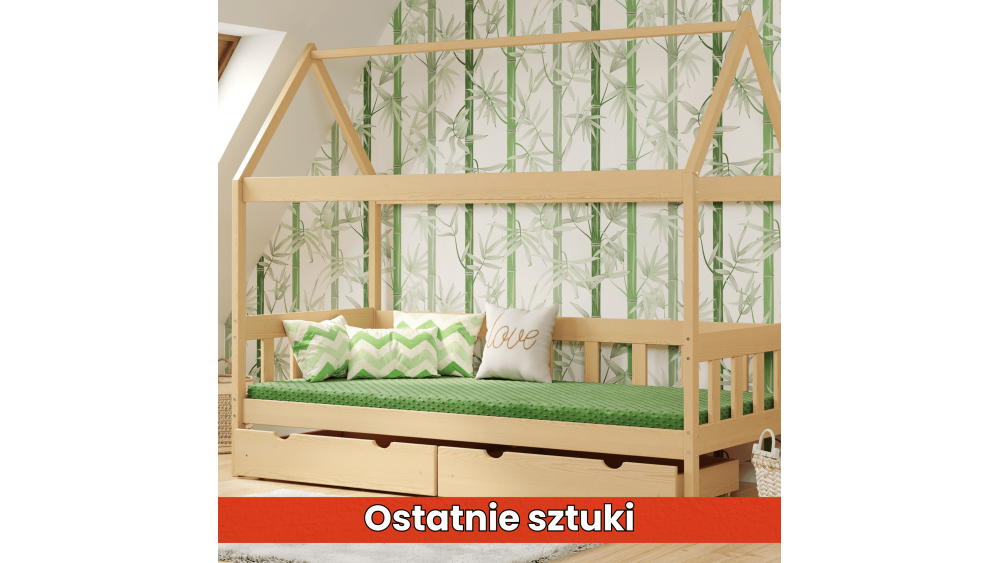 WYPRZEDAŻ - Łóżko drewniane pojedyncze DOMEK SKRZAT 80X180 SOSNA