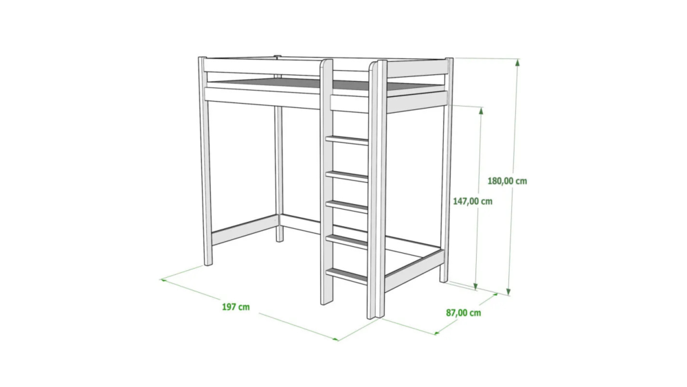 Łóżko drewniane ANTRESOLA, wysokość 180 cm