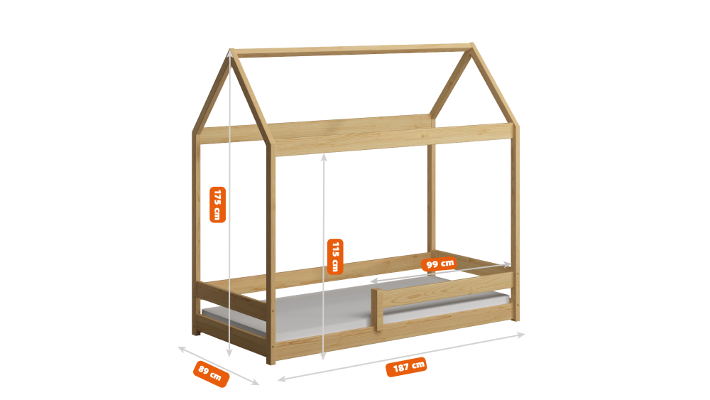 Łóżko drewniane pojedyncze DOMEK MIŚ
