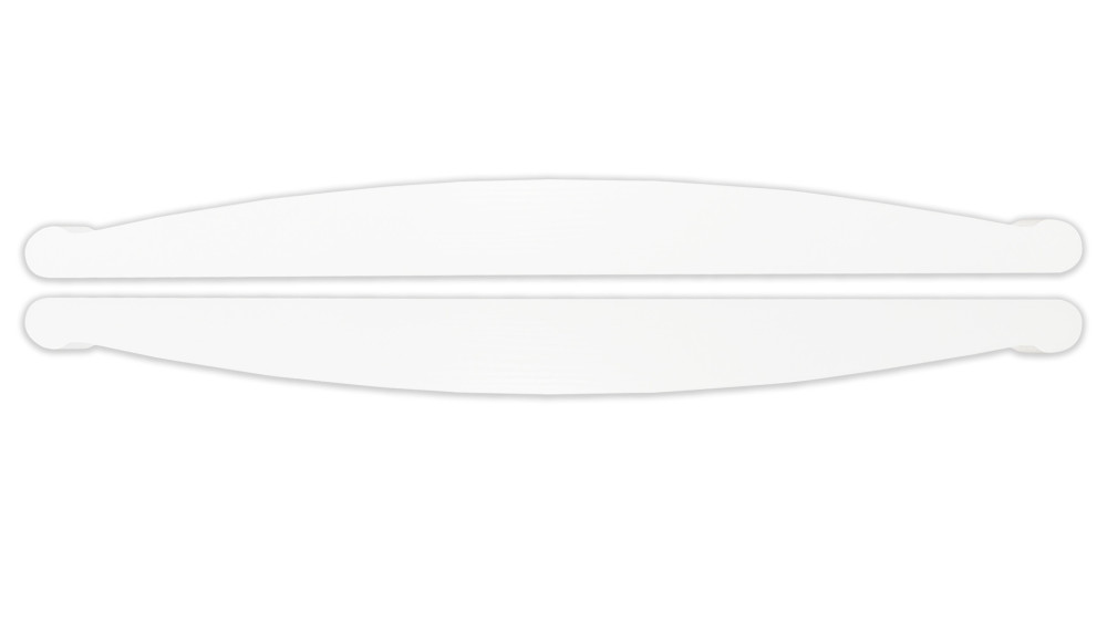 Bieguny wykonane są z wysokiej jakości drewna sosnowego w stanie surowym lub lakierowanym. Standardowy rozstaw otworów na kołki wynosi 61,5 cm – do montażu wystarczy nawiercić od spodu w nogach łóżeczka odpowiednie otwory.