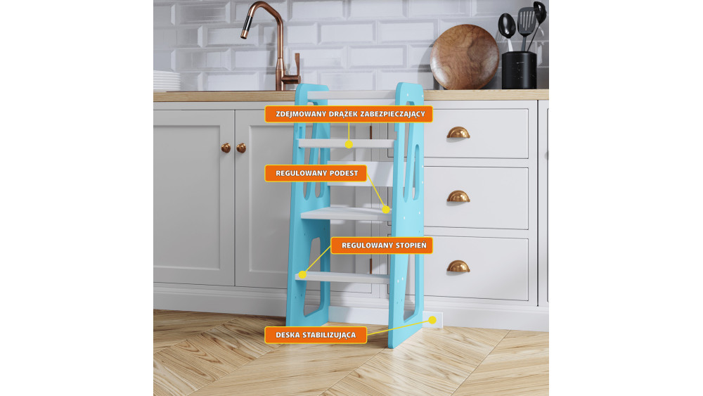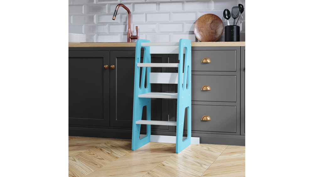 Kitchen Helper to ergonomiczna alternatywa dla krzeseł i taboretów, zapewniająca dziecku bezpieczne miejsce do nauki i zabawy.