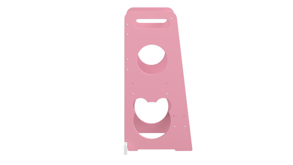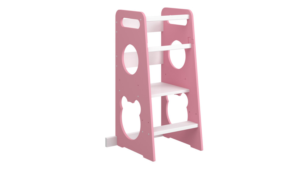 Boczne ścianki posiadają otwory w kształcie misia, które nie tylko dodają uroku, ale także ułatwiają przenoszenie pomocnika. Całość wykonano z wytrzymałej płyty MDF i solidnego drewna, pomalowanych nietoksycznymi, wodnymi farbami bezpiecznymi dla zdrowia dzieci. To połączenie estetyki i trwałości sprawia, że pomocnik będzie służył Twojej rodzinie przez długi czas.