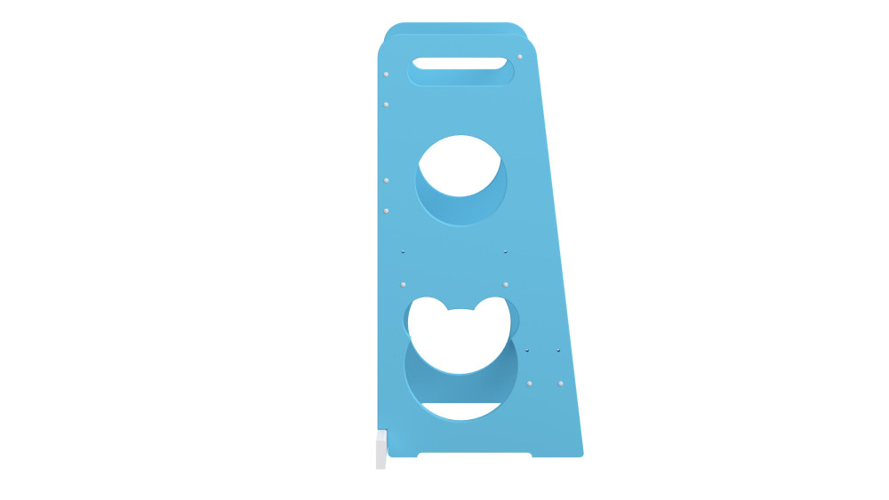 Boczne ścianki posiadają otwory w kształcie misia, które nie tylko dodają uroku, ale także ułatwiają przenoszenie pomocnika. Całość wykonano z wytrzymałej płyty MDF i solidnego drewna, pomalowanych nietoksycznymi, wodnymi farbami bezpiecznymi dla zdrowia dzieci. To połączenie estetyki i trwałości sprawia, że pomocnik będzie służył Twojej rodzinie przez długi czas.