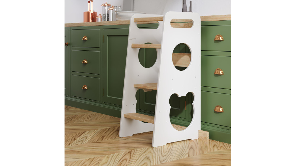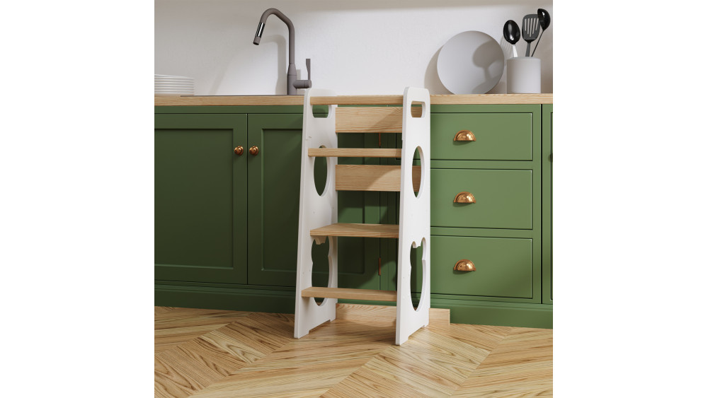 To idealny kitchen helper z regulacją wysokości, który „rośnie” razem z dzieckiem i dostosowuje się do jego zmieniających się potrzeb. Doskonale sprawdza się również jako element funkcjonalnych mebli dziecięcych wspierających naukę samodzielności od najmłodszych lat.