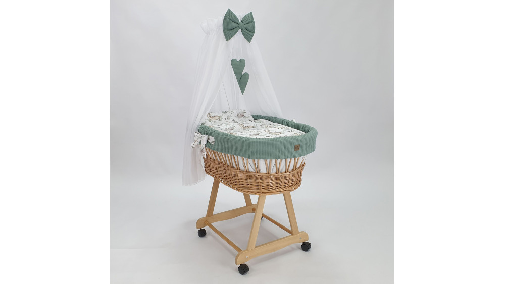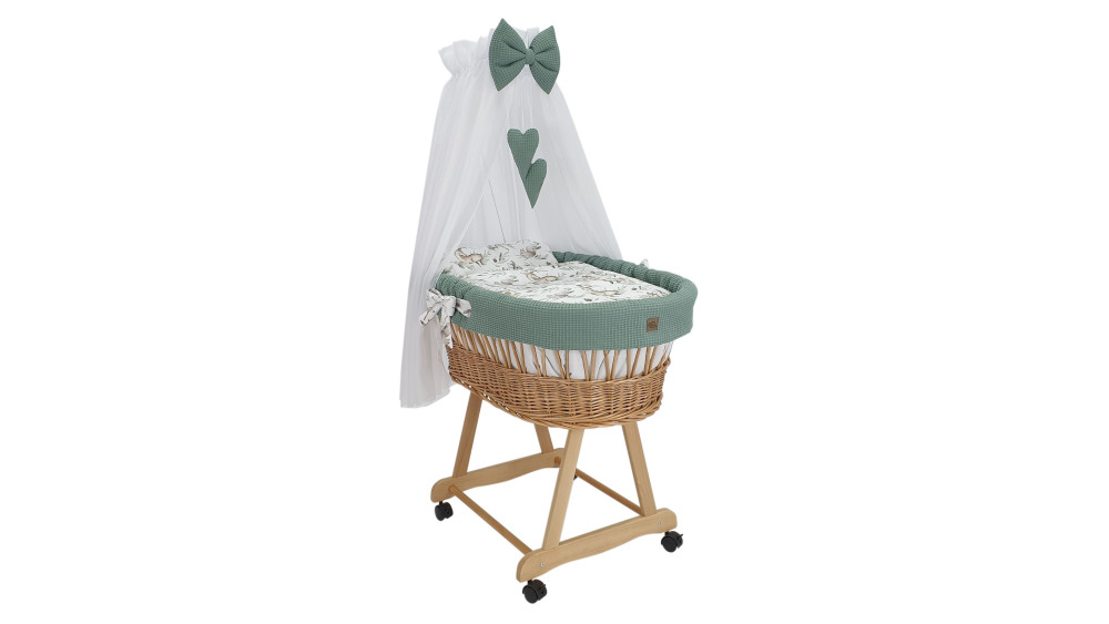 Kosz Mojżesza z baldachimem na kółkach to idealne, mobilne miejsce snu dla niemowląt do ok. 6 miesiąca życia. Dzięki połączeniu tradycyjnego rzemiosła z nowoczesną funkcjonalnością, ręcznie pleciony wiklinowy kosz zapewnia dziecku poczucie bezpieczeństwa i wyjątkowej przytulności.