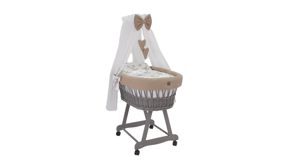 Kosz Mojżesza z baldachimem na kółkach to idealne, mobilne miejsce snu dla niemowląt do ok. 6 miesiąca życia. Dzięki połączeniu tradycyjnego rzemiosła z nowoczesną funkcjonalnością, ręcznie pleciony wiklinowy kosz zapewnia dziecku poczucie bezpieczeństwa i wyjątkowej przytulności.