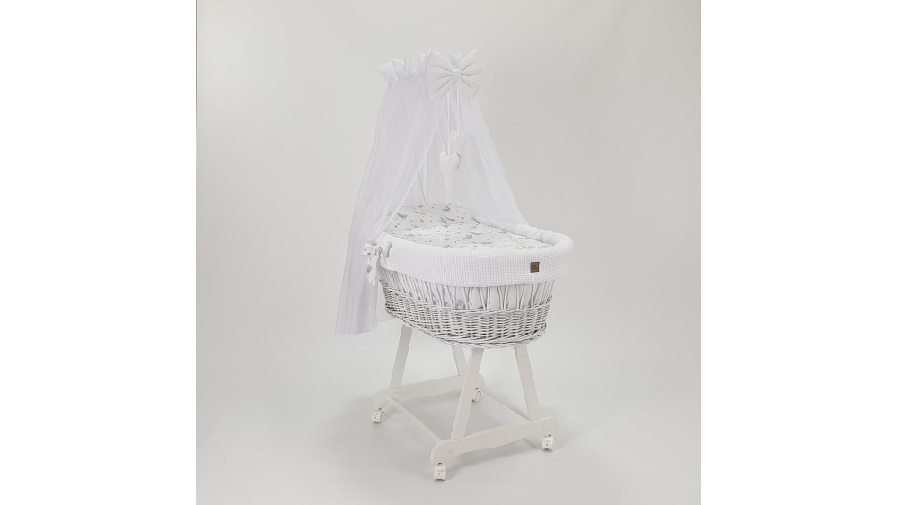 Pościel jest zapakowana w praktyczną walizkę zamykaną na zamek błyskawiczny – idealną do przechowywania lub transportu. Całość prezentuje się wyjątkowo estetycznie, dzięki czemu kosz Mojżesza może również pełnić funkcję dekoracyjną w pokoju dziecięcym.