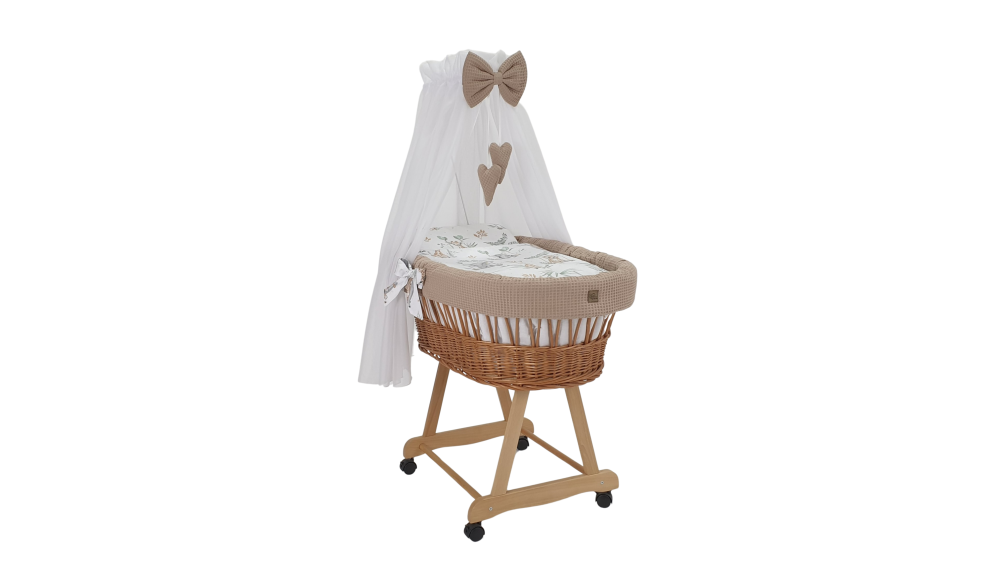 Kosz Mojżesza z baldachimem na kółkach to idealne, mobilne miejsce snu dla niemowląt do ok. 6 miesiąca życia. Dzięki połączeniu tradycyjnego rzemiosła z nowoczesną funkcjonalnością, ręcznie pleciony wiklinowy kosz zapewnia dziecku poczucie bezpieczeństwa i wyjątkowej przytulności.