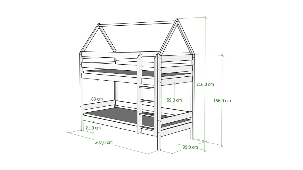 DOMEK PIĘTROWY to inwestycja w radosne dzieciństwo i zdrowy odpoczynek. Dzięki solidnym materiałom i przemyślanemu designowi, mebel ten nie tylko pięknie się prezentuje, ale przede wszystkim zapewnia bezpieczne i inspirujące otoczenie, które będzie służyć Twoim dzieciom przez długie lata.