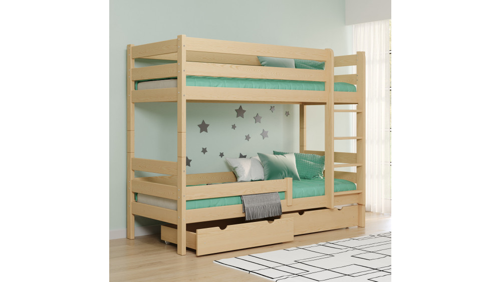 Każdy element łóżka GAGATEK LUX powstał z wyselekcjonowanego drewna sosnowego, które wyróżnia się wysoką odpornością na uszkodzenia mechaniczne. Powierzchnia została zabezpieczona bezpiecznymi farbami wodnymi, które spełniają rygorystyczne normy europejskie, są bezzapachowe i hipoalergiczne. Dla pełnego bezpieczeństwa użytkowników wszystkie krawędzie zostały precyzyjnie zaoblone, a drabinka wyposażona została w płaskie, wygodne szczebelki zwiększające przyczepność małych stóp.