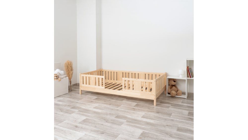 Łóżko NIKO 10 cm wykonane jest w całości z naturalnego drewna sosnowego, które wyróżnia się trwałością, stabilnością i naturalnym urokiem. Każdy element został dokładnie oszlifowany, a wszystkie krawędzie delikatnie zaokrąglone, co minimalizuje ryzyko urazów podczas codziennego użytkowania i zabawy.