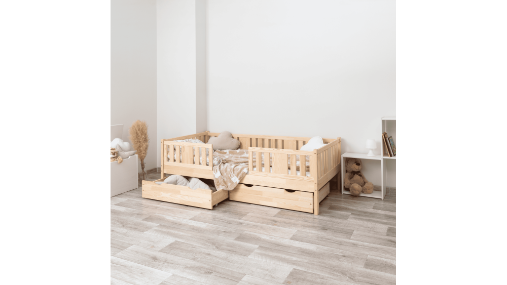 Łóżko pojedyncze NIKO 20 cm to połączenie klasycznego stylu, praktycznych rozwiązań i ekologicznych materiałów. Podwyższona konstrukcja oraz możliwość rozbudowy o szuflady pozwalają zyskać więcej miejsca w pokoju dziecka bez rezygnacji z estetyki i bezpieczeństwa.