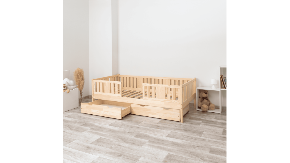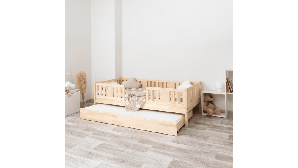 - szufladę z funkcją spania – która zamienia łóżko pojedyncze w łóżko dla dwójki dzieci.