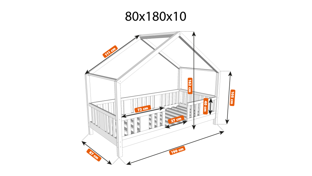 - Rodzaj mebla: łóżko pojedyncze domek z daszkiem