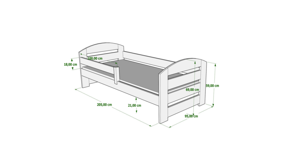 • System barier ochronnych – łóżko wyposażone jest w barierki: pełną oraz krótką (100 cm), które zabezpieczają dziecko przed wypadnięciem podczas snu.