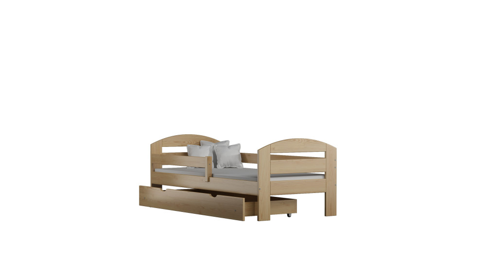 Łóżko dziecięce KAMI wykonane w całości z naturalnego drewna sosnowego to gwarancja bezpiecznego i spokojnego wypoczynku Twojego dziecka. Niska konstrukcja z dwiema barierkami skutecznie chroni przed wypadnięciem, a precyzyjnie zaokrąglone krawędzie maksymalizują bezpieczeństwo podczas codziennego użytkowania. Ponadczasowy design oraz bogata paleta kolorystyczna sprawiają, że model KAMI idealnie wpisuje się w wystrój każdego pokoju dziecięcego.