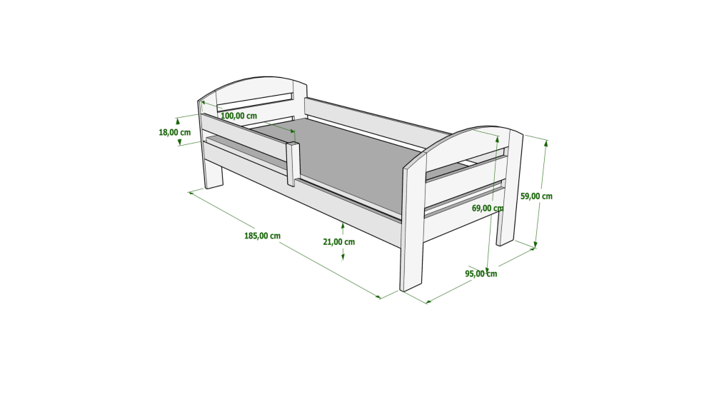 Każdy element łóżka KAMI został zaprojektowany z myślią o najmłodszych użytkownikach. Niska konstrukcja umożliwia dziecku łatwe i samodzielne wchodzenie, a podwłę barierki ochronne (pełna oraz skrócona) skutecznie zabezpieczają przed upadkiem podczas snu. Wszystkie powierzchnie są starannie oszlifowane, co w połączeniu z zaokrąglonymi rogami eliminuje ryzyko przypadkowych kontuzji.