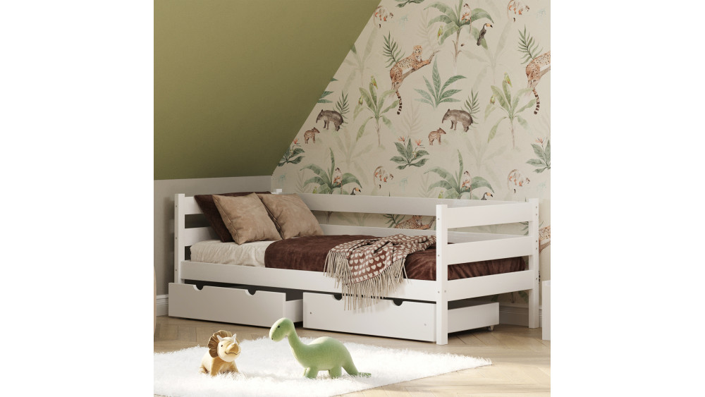 • Oszczędność miejsca – brak bocznych barierek pozwala na wykorzystanie łóżka jako wygodnej sofy w ciągu dnia.