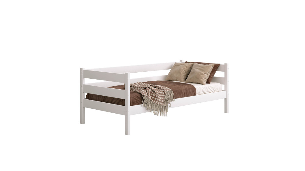 Model wyróżnia się wysokim zagłówkiem oraz brakiem bocznych barierek, co sprawia, że pełni funkcję zarówno wygodnego łóżka, jak i praktycznej leżanki do odpoczynku w ciągu dnia. Szeroki wybór kolorów oraz różnorodne warianty pozwalają dopasować mebel do każdej aranżacji pokoju dziecięcego lub gościnnego.