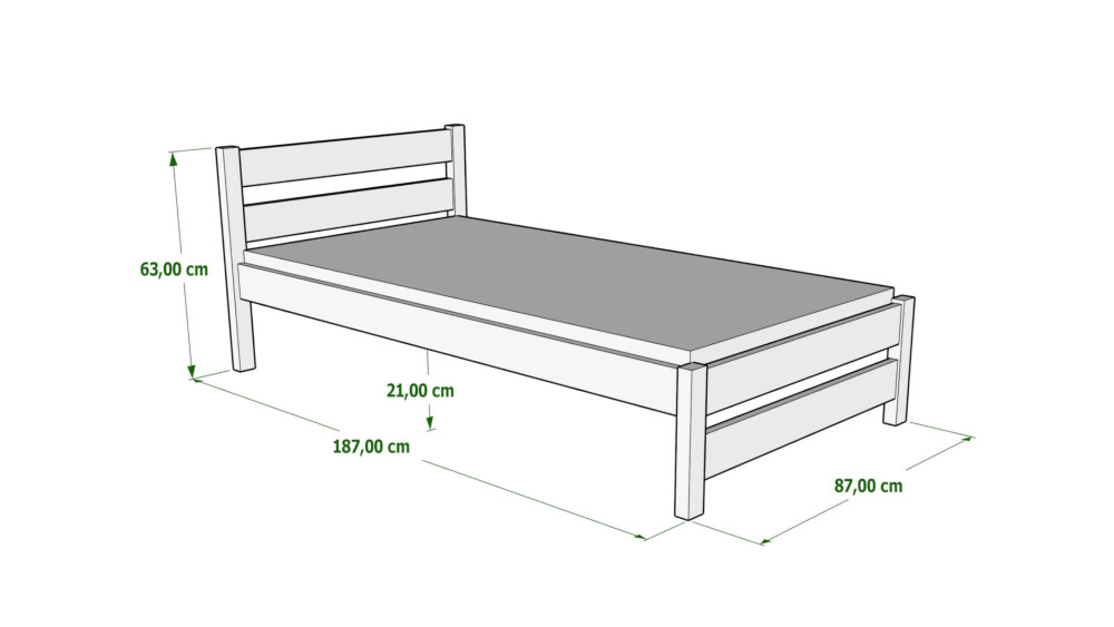 Łóżko KARO dostępne jest w następujących rozmiarach: 80x160, 80x180, 80x190, 90x180, 90x190, 90x200. Wykończenie wykonano bezpiecznymi dla zdrowia farbami wodnymi, które spełniają rygorystyczne normy EN 71-3, co jest kluczowe dla alergików i dzieci. W skład zestawu wchodzi solidna rama, elastyczny stelaż z listew sosnowych oraz zestaw śrub. Materac oraz szuflada nie są częścią zestawu.