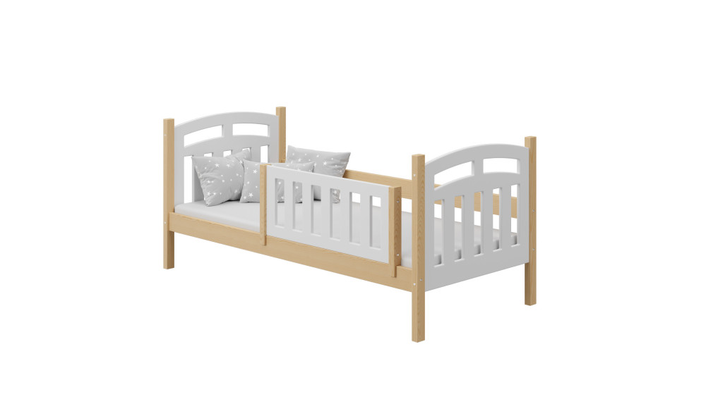 Łóżko dziecięce ZUZIA – drewniane łóżko z barierką i zaokrąglonymi krawędziami