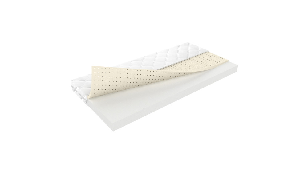 - Warstwa lateksowa – umieszczona po jednej stronie, zwiększa elastyczność punktową i umożliwia swobodny przepływ powietrza. Lateks to materiał o naturalnych właściwościach antybakteryjnych, odporny na rozwój pleśni i roztoczy, co czyni go najlepszym wyborem dla małych alergików.
