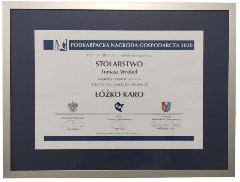 - Certyfikaty Zgodności wydane przez Sieć Badawczą Łukasiewicz–Poznański Instytut Technologiczny Centrum Technologii Drewna, potwierdzające bezpieczeństwo i jakość łóżek dziecięcych