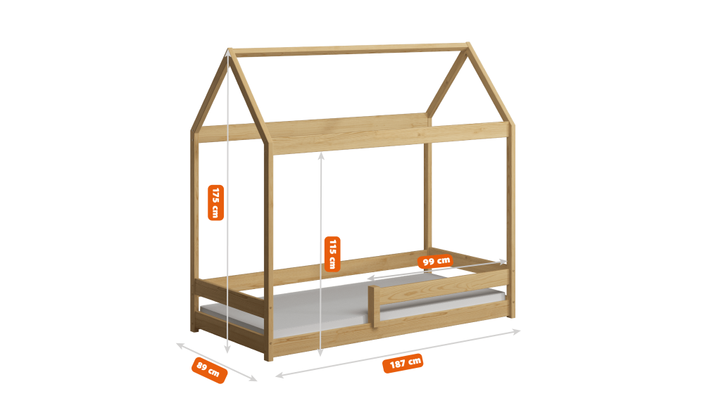DOMEK MIŚ to więcej niż tylko łóżko. To przestrzeń, w której dziecko zasypia spokojnie, bawi się bezpiecznie i rozwija kreatywność. Wykonane z drewna sosnowego, łóżko charakteryzuje się trwałością, stabilnością i naturalną estetyką. Zaokrąglone krawędzie i niska konstrukcja tworzą bezpieczne środowisko dla maluchów, które dopiero uczą się samodzielności.